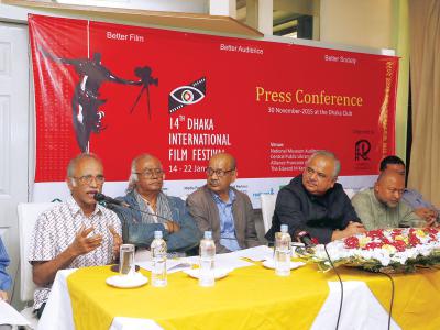 昨日昼、ダカクラブのゲストハウスのレストランで行われた記者会見で、ジャマル総監督は書面のコメントを読み上げた。この会見には、エッセイストのモフィドゥル・ホク氏、詩人で建築家のロビウル・フサイン氏、ナジュムル・A・コリムッラ教授、映画監督でメディアパーソナリティーのサミア・ジャマン氏らも出席した。