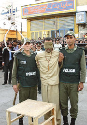 【事件部】身に付けている金製品の略奪を目的として、妻と共謀し304人の幼児を誘拐した若い強盗が昨日午前6時、イスファハーン市のマレク三叉路で絞首刑に処せられた。