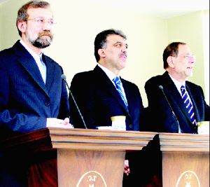 ▼ ラーリージャーニー書記とソラナ代表、アブドッラー・ギュル外相の大統領選出馬を歓迎