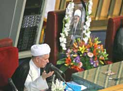 ラフサンジャーニーは、今日イラン・イスラーム共和国は自らの仕事を堅実にこなしていると強調した上で、「彼らは、われわれにいかなる打撃を及ぼすことにも失敗してきた。彼らは核問題で、世界の世論を扇動してわれわれに敵対させ、拡大中東構想での自らの目的を完遂させようと目指していたが、しかしいまだ出だしのところでつまずいたままだ。われわれもまた、最高指導者が年頭に仰た二つの基本原則、すなわち〈国民の団結〉と〈イスラームの連帯〉に対して、特別の注意を払い、強調する必要があるだろう」と語った。