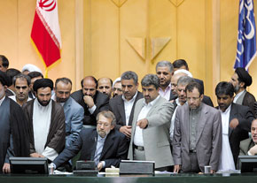 しかしアリー・ラーリージャーニー国会議長は、このような会議は必要ないとして非公開会議の開催を阻止、その上で午前と午後の2回に分けて、閣僚候補を信任投票にかけるための会議を開いた。