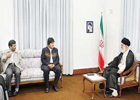 マフムード・アフマディーネジャード大統領も同席したこの会談の中で、モラレス大統領はイスラーム革命最高指導者と面会できたことに深甚なる喜びを表明した上で、ボリビアをはじめとするラテン・アメリカ諸国の諸国民の覚醒は、帝国主義支配からの同地域の解放のプロセスの始まりとなるとの認識を示した上で、「ラテン・アメリカにおける文化的・社会的・政治的変容は、日々拡大を続けており、後戻りはできない」と語った。