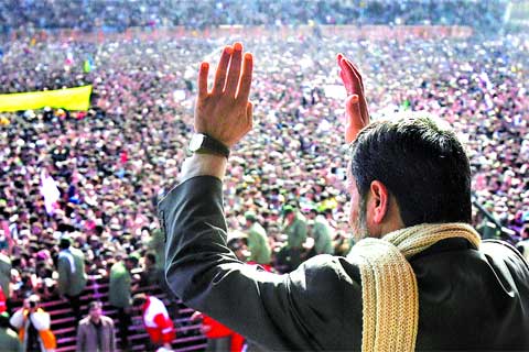 ※2:シャーの「白色革命」に抗議したホメイニーが逮捕されたことに端を発して、ゴムの神学校やテヘランのバーザールを中心に、国内各地で反政府暴動が起き、軍によって鎮圧された事件を指す。この事件をきっかけにホメイニーは一躍反体制運動の闘士として脚光を浴び、1979年の革命に結びついていったことから、同事件は「革命のリハーサル」と呼ばれている。なお、アフマディーネジャードがいう1万5千人という犠牲者の数はかなり誇張されていると思われるが、ゴムからテヘランに向かうデモ隊が空軍の飛行機から機銃掃射にあったとも言われ、一説では数千人が死亡したとされる。