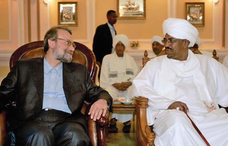 アリー・ラーリージャーニー国会議長は金曜日、テヘランで開かれたパレスチナ支援国際会議に参加した各国の高官団を率いる形で、先週ハーグの裁判所によって逮捕命令が出されたスーダン共和国のウマル・アル=バシール大統領に支持を表明するために、ハルトゥームに向かった。
