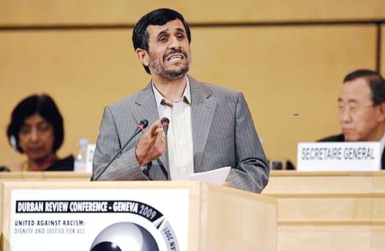 アフマディーネジャード大統領、反人種主義世界会議《ダーバン2》で演説:「世界的圧制の柱が崩れ落ちる音が聞こえる」(1)