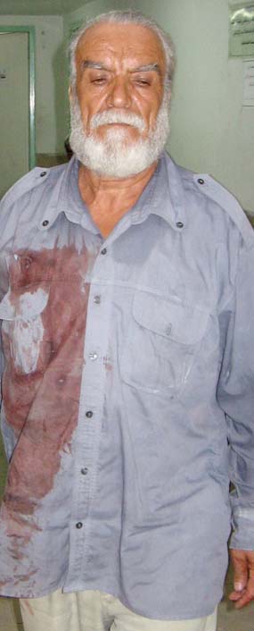 午後7時頃、ちょうど断食明けの食事であるエフタールの支度をしていたとき、銃声と数名の女性の叫び声が地域の静寂を破るように聞こえてきました。すぐに外に出ました。すると、この建物に住むファーテメが恐怖に満ちた様子で助けを求めているのを目にしました。家族の父親モハンマドが怒りに駆られて、カラシニコフで銃弾を乱射していました。銃弾の一つがその建物に住んでいたファーテメという若い娘さんとその父親に当たり、倒れました。襲撃犯の男はそれから、第一婦人のザフラーとその娘サキーネとサディーゲに銃を発射して、ケガを負わせました。