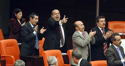 国会の本会議で初騒動が生じた。アフメト・チュルク氏とアイセル・トゥールク氏の国会議員職を剥奪とする憲法裁判所の判断が読み上げられた際だった。平和民主党(BDP)の議員たちも、民主市民党(DTP)が解党してから初参加となる本会議で憲法裁判所の判断が読み上げられるのを聞いた後に、立ち上がり手を叩いて抗議した。シュルナク選出のBDP議員ハシプ・カプラン氏は「アフメト・チュルク氏がこの議会にまだ戻ってくるのを目にするでしょう!」と叫んだ。