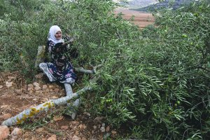 西岸地区北部の東ルッバン村(ナブルス県)で、入植者が根こそぎにしたオリーブの木の間に座り込むパレスチナ人女性。同村のパレスチナ人たちは、エリ入植地の入植者たち が一昨日の夜に村の農地で木を切り倒して行ったと主張している。農地の所有者であるラジャー・ワズワズ氏は、自分の農園のオリーブの木が完全に破壊されている光景に「ショックを受けた」と述べた。同村に出向いた警官らは、オリーブの木14本が破壊されたと確認した。パレスチナ人たちによると、エリ入植地の入植者たちによるオリーブの切り倒し事件は先月(9月)から繰り返されているという。