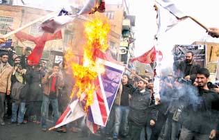 大学生らはまた、「アメリカはイランの大いなる敵、イギリスはイラン国民にとってもっとも汚らわしき敵」などのスローガンが書かれた手書きのプラカードを掲げた。