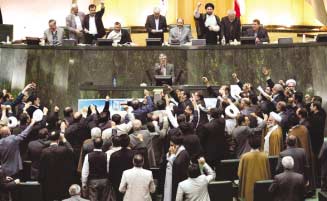 国会議員らは昨日、今回の暴動を起こした者たちの動きを非難、議場の演壇のまわりに集まり、月曜日に起きた暴動の首謀者とされるムーサヴィーとキャッルービーの両名を極刑に処すよう求めた。