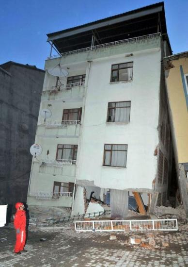 今回の地震最大の被害を受けたのは、ドルトゥ・エイリュル(9月4日)地区のハムザ・オジャン通りにある5階建てのマンションだ。建物の地階のオフィスが崩れ落ち、同時に2階の部屋が1階まで落ちてきた。4家族が住んでいた5階建ての建物は、隣の4階建ての建物の上に横倒しになり、奇跡的に崩れなかった。その際ストーブがひっくり返り、小規模の火事が起きた。