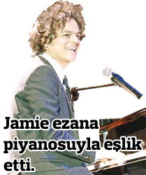 ジェイミーは、夜半のエザンの流れてきたのに気が付いて、演奏の手を止めた。そして、ピアノの前に向かうと、3,500人の観客を前にエザンに即興で伴奏をつけてみせた。観客はどれほどそれに感動したことだろう…。ジェイミーはエザンとの即興を堪能した後、「この素晴らしい声に伴奏を付ける許可(機会)を与えてくださった皆さんに感謝します」と言って、コンサートを締めくくった。