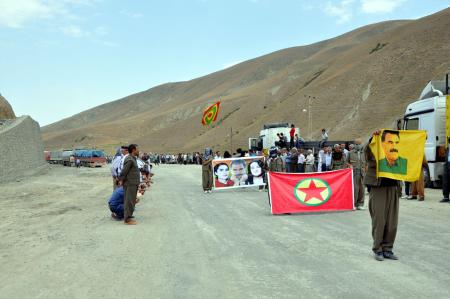 イラン側のカンディル山地域で開始された軍事作戦に抗議するため、約500人が本日、イランへの国境であるハッキャーリ県ユクセコヴァ郡エセンデレ町に集まった。ハッキャーリや、郡の住民、シュルナックから来たBDP党員は国境ゲートで抗議を始めた。デモにはヴァン県選出のBDP党員国会議員オズダル・ウチェル氏、BDPハッキャーリ支部長オルハン・コパラン氏、BDP幹部、NGO代表らが参加した。PKK党旗を掲げたデモ参加者らは、「民主主的自治を歓迎!」、「AKPの人種差別的攻撃、政治的・軍事的作戦を非難する」、「ゲリラの誇り高い抵抗を歓迎」と書かれたプラカードやオジャランのポスターを掲げた。