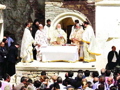 スメラ修道院でギリシャ正教儀式、ケメンチェの音色とともに