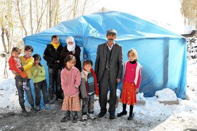「私は、申請しましたがテントをもらえませんでした。自分で作ったテントで生活していた時に娘が体調を崩し、バトマンに搬送された後、そこで亡くなりました。私は家で暮らしていた時は、子供をちゃんと育てていました。しかし、ナイロンの小屋で娘は感染症にかかり病気になり、搬送先のバトマンの病院で亡くなりました。寒いけれど、テントをもらえなかったので家族とともにナイロン小屋で生活を続けています。」