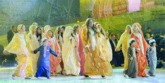 演劇には二つの楽団が出演した。アラブからはサリーム・サハーブの楽団、外国からはブルガリア国営ラジオ管弦楽団が参加した。また、バハレーンとブルガリアから女声合唱団が参加し、カラーリー庶民芸術グループが歌とダンスと打楽器演奏を披露し、ヒッド青年演劇団が水夫の役を演じた。そしてバーラール芸術学校の子供達もこれに加わった。