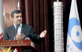 イランのアフマディー・ネジャード大統領は昨日[14日]、イラン国営テレビによって放映された祝宴において、新たな3つの核計画を開始し、医療研究炉で自国製の核燃料棒を最初に使用する過程を自ら監督すると発表した。これはイランの欧米諸国に対する挑戦を反映した措置である。というのも欧米諸国は、イランの核開発の野望を挫けないにせよ、阻止したいと考えており、原子炉や核計画に関わるあらゆる事柄を標的としているからだ。