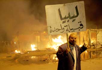ベンガジで昨日[15日に] 連邦制の支持者たちとそれに反対している人たちとの間で起きた血みどろの衝突は、リビアが現在経験している崩壊状況を反映している。その状況は、武装民兵組織や、武器の拡散や国民的和解の不在や国内の諸問題をムアンマル・アル=カッザーフィー政権崩壊後の後を継いで国を経営し、平和な領土へと変えるとされる中央政府や移行国民評議会の弱さに起因する。