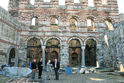 次はアイヴァンサライ地区へと向かう。エミル・ブハリ・メスジトとハーレム・コナクの修復作業が続いていた。土台だけしか残っていなかったメスジトは、写真に沿って実物に近いように再建された。同様に、すぐ隣にあるハーレム・コナックも修復されて文化センターとなっていた。テミズ副区長は、「一番難しいのは、土地の収容です。歴史遺産がある場所の多くは、長年の間に不法所有されてしまい、登記書が与えられているようなところさえあります。市民を困難な立場に立たせることなく、細かいところまで気を配って取り組みながら遺産に光を当てているのです」と話す。そこから、テミズ副区長と共に、議論の焦点であるアイヴァンサライ再建地区に入った。私が「修復作業チームになぜ考古学者がいないのですか?」と聞くと、テミズ副区長は次のように答えた。「このあたり全てを地中探査レーダーで調べました。地中に何があって何がないのか我々は全てを把握しています。あまり深く掘るようなことはないので、考古学博物館への報告は必要ないと思ったのです。我々が過ちを犯したことは認めます。でも、あなた方もご覧になったように、歴史遺産保護のためにファーティフ区として大変な努力をしています。ひとつミスをすると、私たちが行った全てのことが陰に隠れ見えなくなってしまいます。皆、アイヴァンサライ地区とスルタンアフメト地区のホテル建設のことばかり私たちに聞いてきます。歴史的半島はとても大きく、何千年もの文明の上に我々は住んでいるのです。見過ごしてしまうことや、私たちの手が届かない部分も時にはあります。」