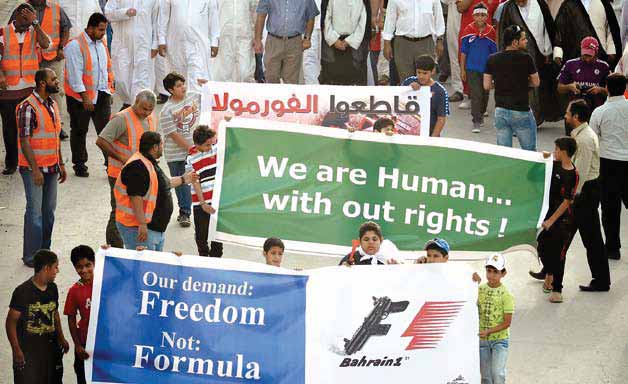 市民らは口々に、レースの開催は、自国が平穏で国民も現状に満足しているということを、ハリーファ家が示すためのカムフラージュにすぎないと述べている。しかしながら、バーレーンにおける抗議運動のうねりは今も続いており、治安部隊との衝突によって複数の市民が毎日のように死傷しているというのが現実である。