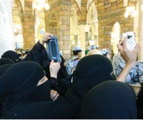 メッカの聖域に礼拝と小巡礼のために参列したサウジ人・サウジ在住者の女性達は、自分たちの携帯電話でアラブ・イスラーム諸国からの首脳訪問団の模様を記録することを熱望した。