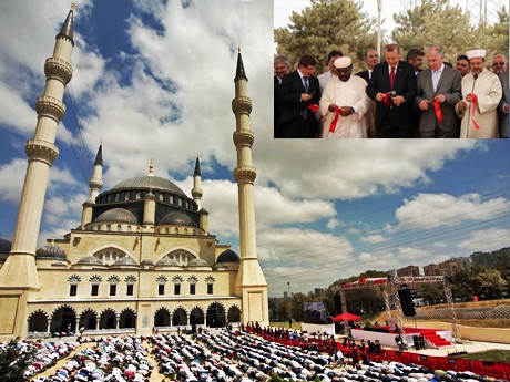 エルドアン首相は、その後招待国の政府要人に対し、落成したモスクのミニチュアポートレートを送った。式典では、ベキル・ボズダー副首相をはじめエルドア ン・バイラクタル環境都市整備相、ハヤティ・ヤズジュ税関通商相、アフメト・ダヴトオール外相、イスメト・ユルマズ国防相、エゲメン・バウシュEU加盟交渉担当相、オメル・ディンジェル国民教育相、宗務庁長官メフメト・ギョルメズ博士、イスタンブル県知事ヒュセイン・アヴニ・ムトゥル、アタシェヒル区長バ タル・イルゲズディも含む要人達にもプレートや贈答品が贈られた。その後エルドアン首相は、ガボン共和国のボンゴ・オンディムバ大統領、イラク国民議会議長ウサーマ・アン=ナジャフィー、そして各国の首脳達と一緒にテープカットを行い、モスクと公園の落成を行った。