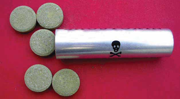 「コメ農薬」は、貯蔵しているコメの害虫被害を防ぐために使われる、危険なリン化合物である。人間がこの錠剤を使用すると、激しい致命的な症状をもたらす可能性がある。