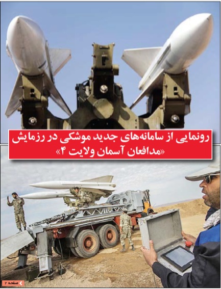 別の報道によると、合同軍事演習「ヴェラーヤトの空を守る者たち4」の報道官は、「イラン・イスラーム共和国の神聖なる領土内の、広範囲にわたる地域で行われているこの演習の2日目、仮想敵の侵略機を発見・特定し、追尾する作戦が成功裏のうちに行われた」と述べた。