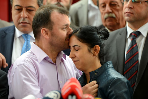 アレッポで取材中、断食明けの祭のときに拘束され、90日もの間、閉鎖された独房で解放を待っていたジュネイト・ウナルさんが、昨日ダマスカスで解放された。ウナルさんは解放後、自分を救ってくれたCHP代表団とともにハタイのヤイラダー郡にある国境門からトルコに帰国した。妻のヌラン・ウナルさんとの再会はカメラから離れた税関の中の一角で実現した。ウナル夫妻は会見を行った際、時々抱きしめあい、すすり泣いた。