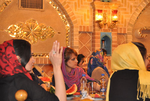 外で強制的にベールを着ているが、中では口紅を塗り化粧をしている女性達は、秘密にであるが、すべてにおいて全く遅れを取っていない生活様式を続けている。教育を受けたイラン人は、あらゆる禁止事項にもかかわらず、これらに妥協することを全く望んでいない。家に集まった友達とのおしゃべりでは、ベールを脱き、ハイヒールや流行りの洋服を身に付け、まぶしいほどだ。
