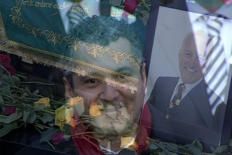 メフメト・アリ・ビランド氏は、妻と息子の言葉によれば「情熱と一体であった」職場と今日(19日)最後の別れをした。ドアンTVビル前でビランド氏のための式典が行われ、同僚たちは彼に最後の別れをした。一昨日亡くなったジャーナリスト、メフメト・アリ・ビランド氏の遺体は、アメリカ病院から7時50分頃移送された。ビランド氏の妻ジェムレさんと息子のウムル・ビランドさんは互いに抱き合って支えあった。ビランド氏の遺体はズィンジルリクユ墓地の遺体の洗浄場に移された。遺体はその後9時30分頃ドアンTVセンター前に移された。