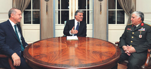 大統領府においてレジェプ・タイイプ・エルドアン首相とネジデト・オゼル参謀総長が木曜日を通例としてアブドゥッラー・ギュル大統領と行っている毎週の定例会談が今回は三者首脳会談という形で実現したのは、特に艦隊司令官の辞職や、海軍司令本部における司令官や大佐の欠如と関係していた。