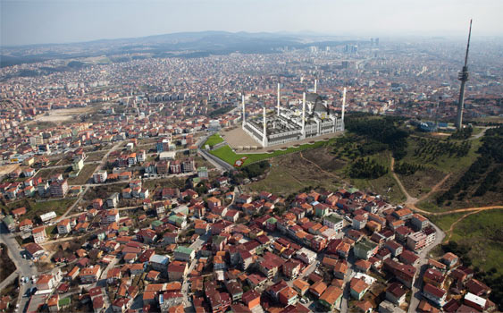 イスタンブルのチャムルジャの丘で、モスクの建設工事が始められ、重機が建設予定地での作業を開始した。