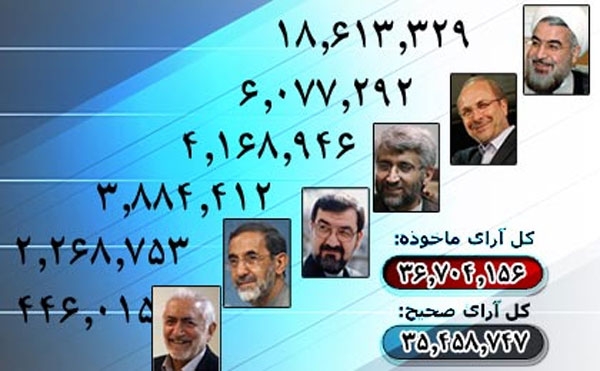 以下が内務相によって発表された選挙結果である。内務相は、投票率を72.7%と発表し、ロウハーニーが新大統領であると宣言した。