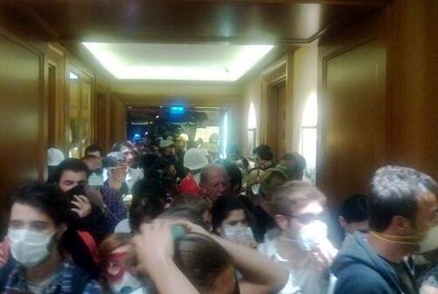 警官隊、ディーワン・ホテルに逃げ込む人びとに催涙ガス
