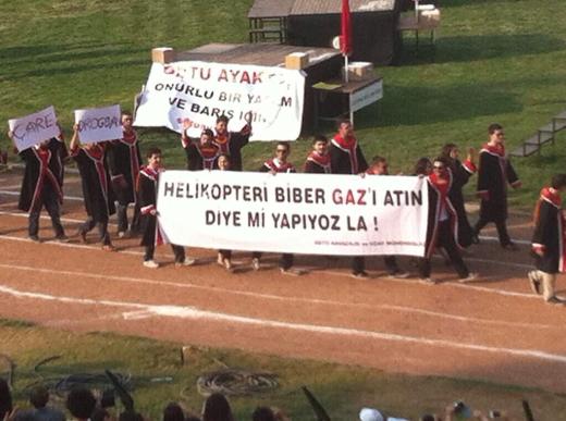 ■中東工科大学スタジアムで行われた卒業式での行進では、ゲズィ公園運動への介入へ抵抗が示された