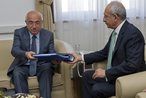 チチェキ国会議長は、BDPの後にCHPを訪問した。会談後に、短い記者会見を行ったケマル・クルチダルオールCHP党首は、「会談を妨げる基本的な問題があります。公正発展党(AKP)のが議長職への固執をやめないことです…約40ヶ条がAKPの議長職への固執ゆえに協議されていません。我々はAKPがこれに固執せず、他の条項が協議されれば、合意が得られるであろうと考えています。我々は敬愛なる議長に対し合意が得られた、また得られていない条項が世論に反映されるよう要求しました。自由主義的かつ民主主義的な憲法を支持しており、協議の中断は望んでいません」と述べた。