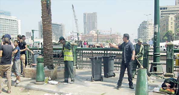 カイロ公共清掃美化機構は、民衆による金曜日のデモ行動の終了後に大規模キャンペーンを実施し、デモ隊によっていたるところに残された約300トンのゴミを拾った。デモは、前大統領支持派と革命および7月(訳注:原文まま、6月の間違いか)30日後の体制支持派の両陣営により行われ、前者は「判定の金曜日」、後者は「委任と反テロリズムの金曜日」とデモを銘打った。