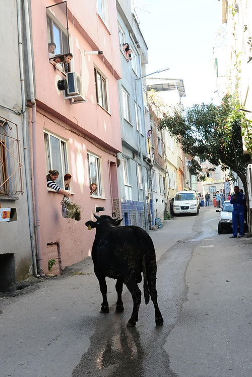 また、イスタンブルのヨーロッパ側でもお馴染みの光景が見られた。洗車スタンドでは屠られた家畜の血が下水に混じった。屠殺はやはり子どもたちの目の前で行なわれた。子どもたちの中には、屠られる前の家畜を可愛がり、餌をやっている様子が見られた。バイラムパシャ区が用意した屠殺所では、衛生的に屠られていた。
