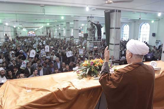 複数の通信社がすでに報道しているように、〔ラフサンジャーニーが登壇し、演説を始めると〕「アメリカに死を」のシュプレヒコールが叫ばれ、その一方で「ハータミーに幸いあれ、ハーシェミーに平和あれ」のシュプレヒコールが飛び交〔うなど、会場は騒然とした雰囲気に包まれ〕た。ハーシェミーはそれに対し、数回にわたり沈静を呼びかけたが、しかし結局は「プログラムが詰まっていますので、ここで演説を終えます‥‥」と述べて、演説を終了せざるを得ない事態に追い込まれた。