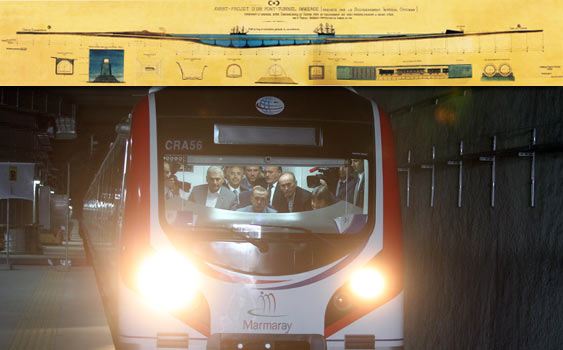 マルマライの、ボスフォラス海峡下横断を可能にする11のトンネルの第一号は、ビナリ・ユルドゥルム交通海事通信大臣と当時の鉄道港湾航空建設局(DLH)のアフメト・アルスラン局長が参加した2007年3月24日の式典で海に設置された。エルドアン首相は昨年1月15日アイルルクチェシュメでマルマライの最初のレール敷設をおこなった。エルドアン首相が運転席に座り、マルマライ・プロジェクト最初の試運転は2013年8月4日に行われた。