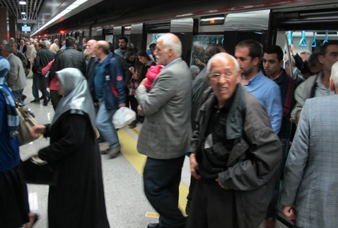 ・ウスキュダルへ向かう乗客たちは、イェニカプ駅で昼の12:00-12:55の間、約1時間電車を待った。10分に1本運行するはずのメトロがようやく到着したかと思えば、乗車時にも混乱が起きた。