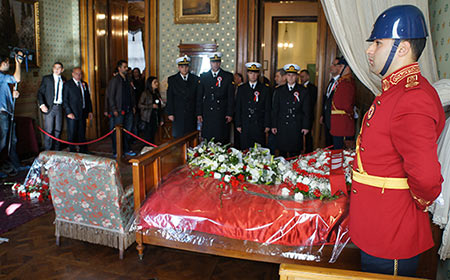 死後75年経ってもムスタファ・ケマル・アタテュルクは敬意をもって偲ばれる。ドルマバフチェ宮殿の公式プログラムは、アタテュルクが人生の幕を閉じた時刻9時5分に黙とうとともに開始した。国歌斉唱の後、市民は訪問のために宮殿に誘導された。訪問者の通行は宮殿内にあるパーティションポールによって整理された。