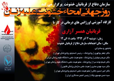 メフル通信の報道によると、「女性に対する暴力をなくす世界の日」に合わせる形で、「暴力被害者を守る会」主催で「配偶者からの暴力の犠牲者の治療に取り組む救急センター講習会」が月曜日〔=11月25日〕正午に開かれた。