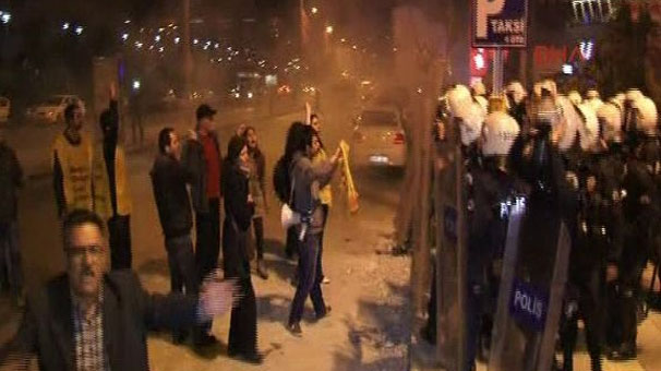 事件が発生した場所に集まった人だかりはその後AKPの選挙事務所へ抗議の行進を行った。選挙事務所の前に行きつき、事務所と党のバスに投石の雨を降らせた。これに対し対策を講じようと、機動隊が集団に対し催涙ガスでもって介入した。
