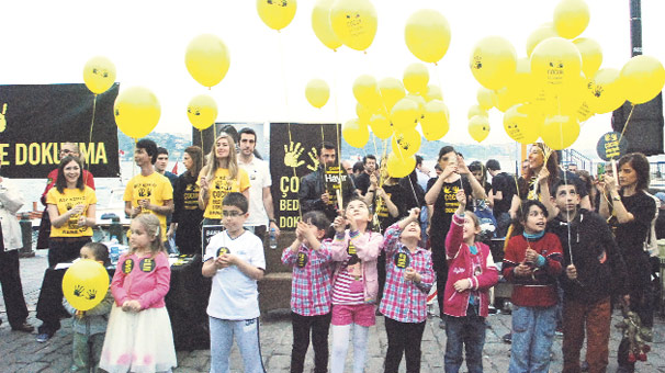 両親と共にオルタキョイに集まった子供たちは、彼らの体に「私の体に触るな」シールを貼り付けてゲームを楽しんだ。その後、「児童虐待に終止符を」の願いをこめて、手に持っていた風船を空に飛ばした。