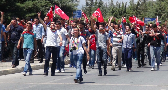共和国広場での開催が予定されていたイベントでは、対立する2つのグループ間でわずかな時間ではあったが緊張が走った。このため、イベントは社会学部の(建物の)前で行われた。トルコ国旗を持ち、スローガンを唱えた学生たちはまた、歌を歌い、そしてハライ(トルコの伝統的な民族舞踊)を踊った。また、学生たちにはチキンピラフとアイランが提供された。社会学部の前でしばらくの間イベントを行った学生たちはその後大学の正門まで歩き、マスコミ向けの声明を読み上げた。学生代表であるハリル・クルテシェンさんはトルコ民族主義を強調しながら、以下のように述べた。