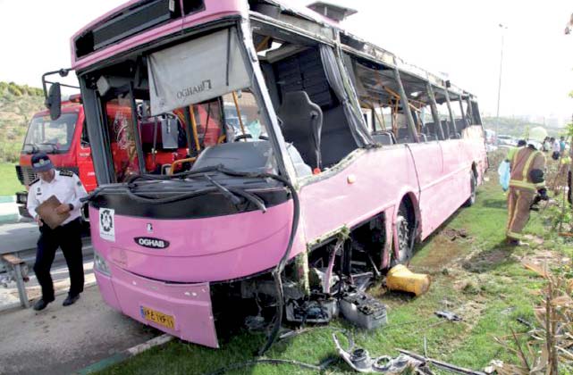 テヘラン交通警察広報センター所長のエイノッラー・ジャハーニー大佐は、イラン学生通信(ISNA)とのインタビューの中で、事故現場に関して「昨日の朝9時頃、アーザーデガーン・ハイウェイの徐行帯を北から南に向けて走行中の合弁社の民間部門のバス1台が、東ハキーム・ハイウェイに入ろうと右折したところで横転する事故があった」と述べた。