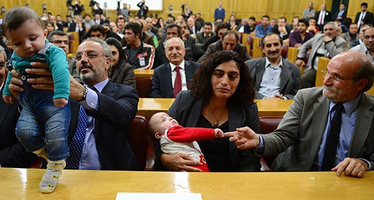販売した本のために組織(PKK)の構成員として処罰され、言い渡された2年1ヶ月の求刑が最高裁で決定したミュルキィエ・クルンチはHDP会派会合に出席した。クルンチは会合に夫と双子の子供であるロリンとオズギュルと共にやってきた。HDPのエルトゥールル・キュルクチュ共同党首はスピーチの前に双子のロリンとオズギュルと一緒に写真を撮った。
