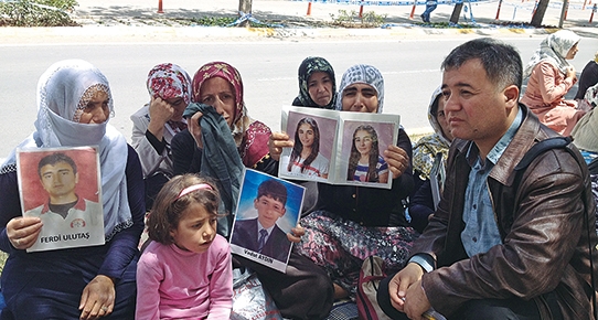 家族たちの苦しみは同じであり、それが彼らをここに集めたようであった。ディヤルバクルには、トルコ国内のさまざまな地域から人々が集まった。アンタルヤからやってきた者たちもいれば、シヴァス、アルダハンからやってきた者たちも・・・。テントの四方は、「汚れた戦い」を糾弾し、子供たちを返すよう求めたプラカードやメッセージで溢れている。そして人々は皆例外なく、その手に子供たちの写真を持っているのであった。彼らの多くは、BDP(平和民主党)やHDP(人民の民主主義党)の支持者である。エルドアン首相を支持し、彼のクルド問題解決プロセスに期待を寄せているとみられている。彼らは、セラハッティン・デミルタシュ氏率いる「国家謀報機構(MİT)からお金を得ている」といった言葉にひどく傷ついてきた。市の対応にも不満を持っている。子供たちが「誘拐された」とは思っていない。しかしその代わり、「騙された」という表現を用いている。話すたびに、彼らの瞳からは涙がこぼれ、彼らの中からはクルド語とトルコ語で哀歌を歌う声も高まっている。